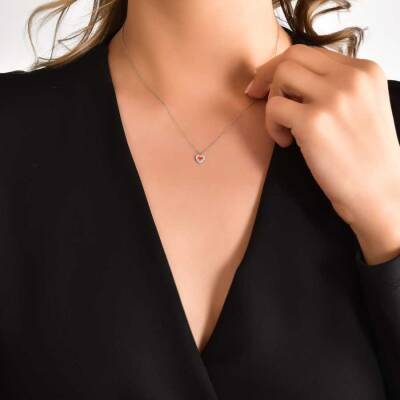 0,07 Karat Mineli Kalp Figürlü Pırlanta Kolye
