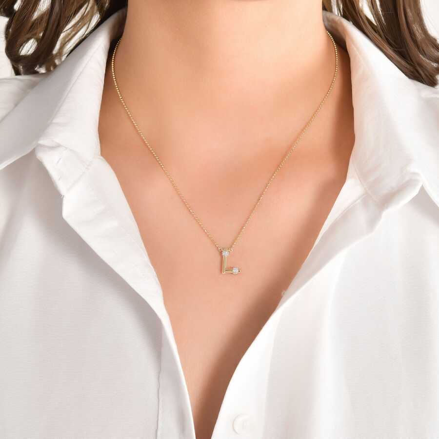 0,08 Karat Pırlanta (L) Harfli Kolye