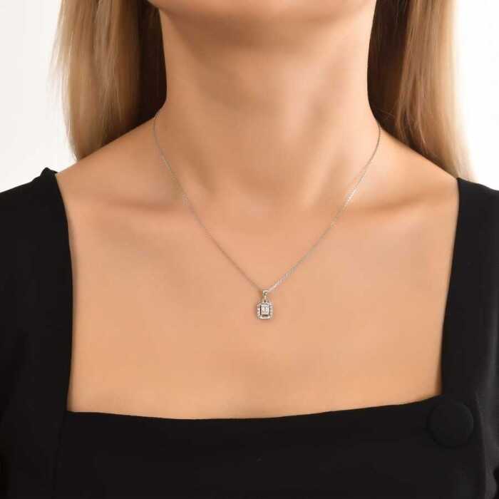 0,10 Karat Efektli Pırlanta Baget Kolye