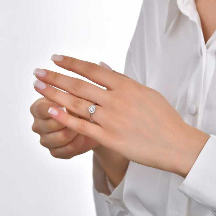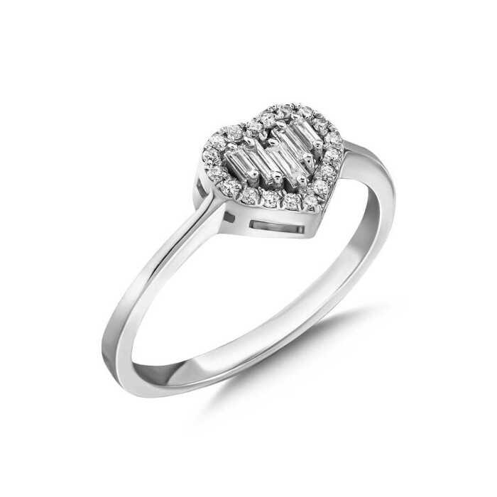 0,18 Karat Pırlanta Baget Kalp Yüzük
