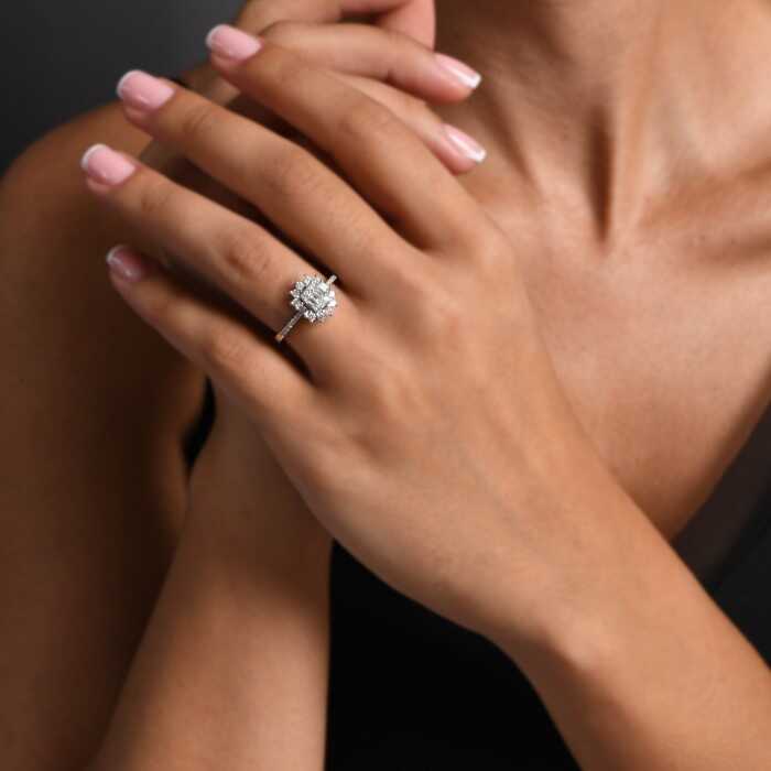 0,27 Karat Pırlanta Baget Çiçek Yüzük