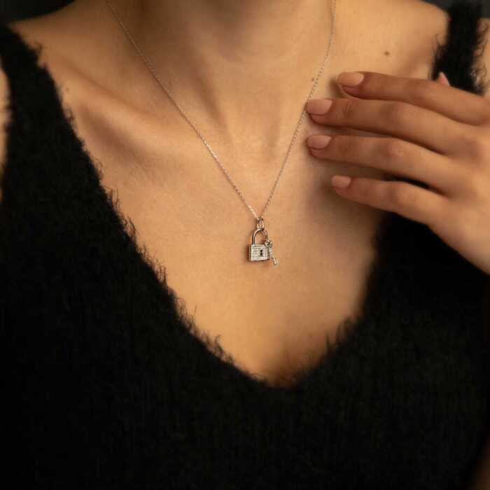 0,31 Karat Pırlanta Anahtar ve Kilit Tasarım Kolye