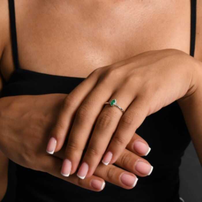 0,33 Karat Pırlanta Markiz Zümrüt Yüzük