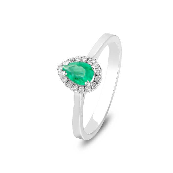 0,45 Karat Pırlanta Damla Zümrüt Yüzük