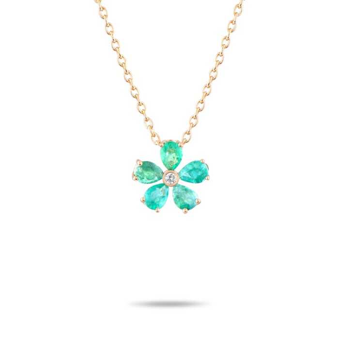 0,56 Karat Pırlanta Zümrüt Çiçek Kolye