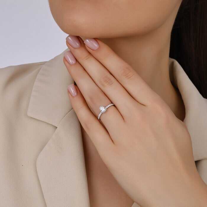 0,87 Karat Pırlanta Damla Tektaş Yüzük