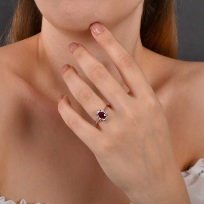 1,08 Karat Pırlanta Oval Yakut Yüzük