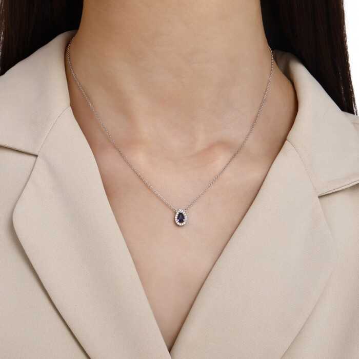0,83 Karat Pırlanta Safir Damla Kolye
