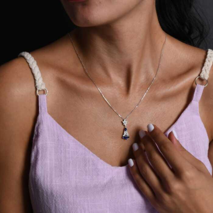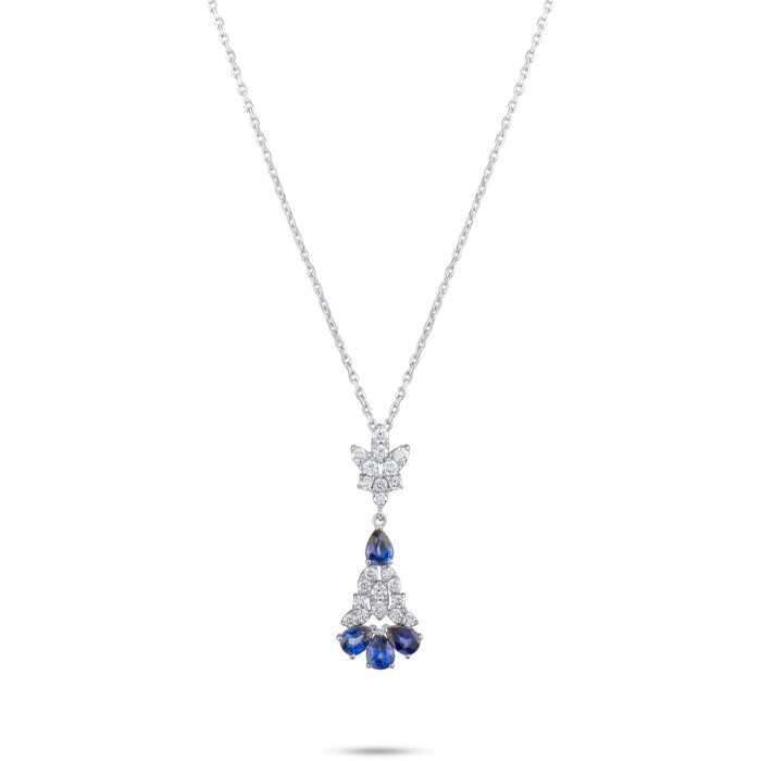 1.40 Karat Pırlantalı Tasarım Safir Kolye