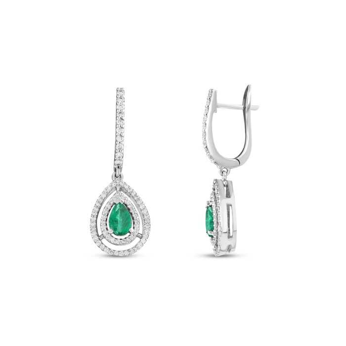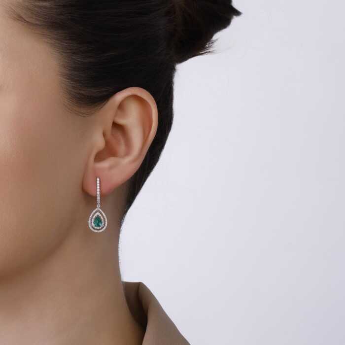 1,47 Karat Pırlanta Zümrüt Damla Küpe