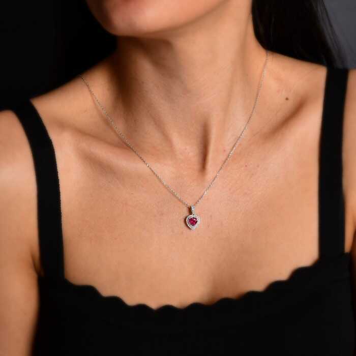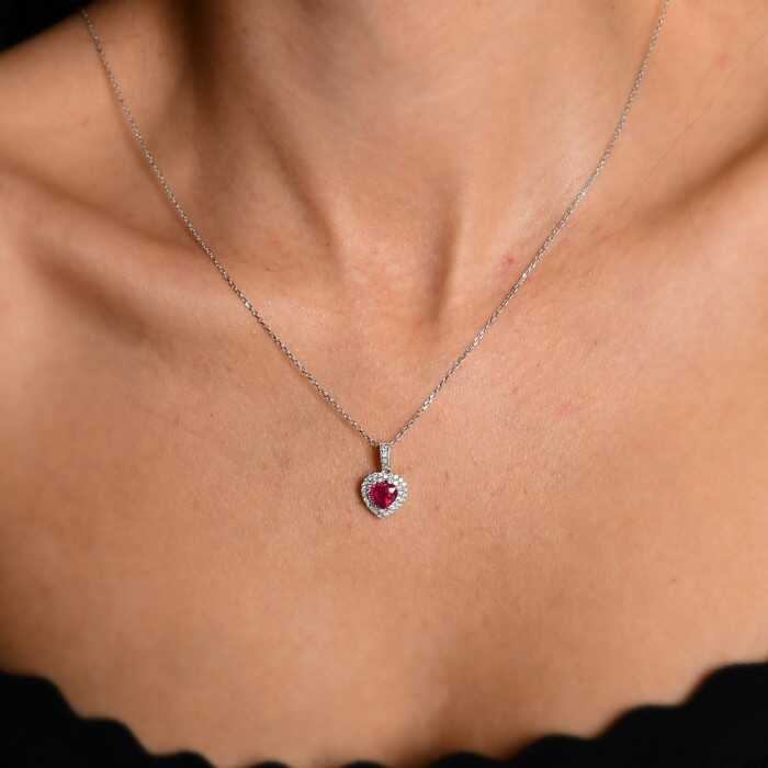 1,50 Karat Pırlanta Yakut Kalp Kolye