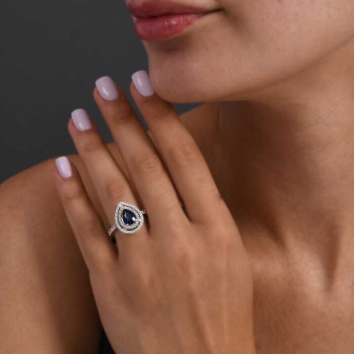 1,60 Karat Pırlanta Damla Safir Yüzük