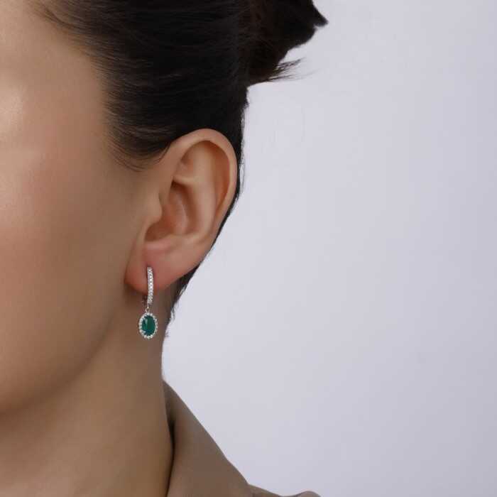 1,75 Karat Pırlanta Zümrüt Küpe