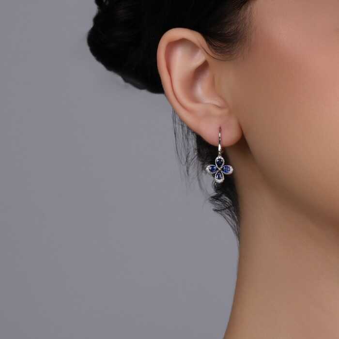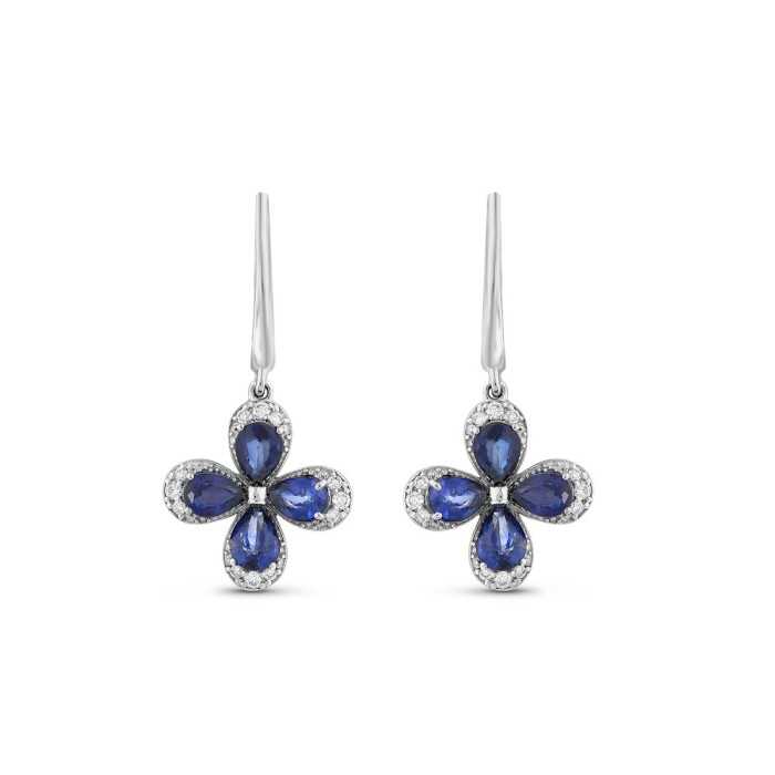 1,92 Karat Pırlanta Safir Çiçek Küpe