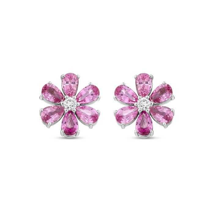 2,90 Karat Pırlanta Pembe Safir Papatya Küpe