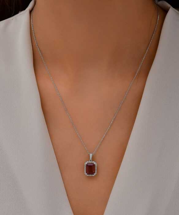 3,68 Karat Pırlantalı Yakut Kolye