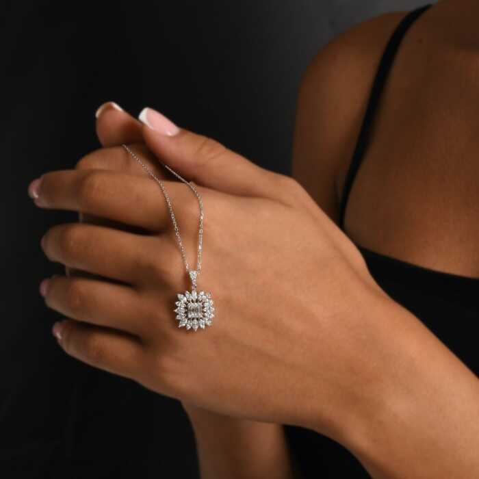 0,88 Karat Pırlanta Baget Markiz Çiçek Kolye